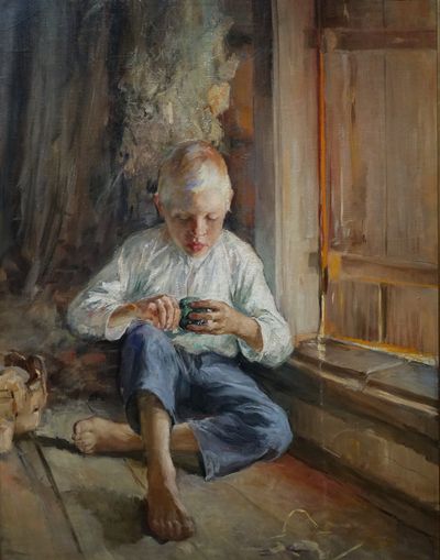 Pekka Halonen. Jeune Garçon tenant une pomme, 1891. Huile sur toile. Collection particulière. |