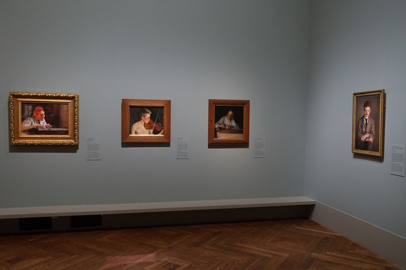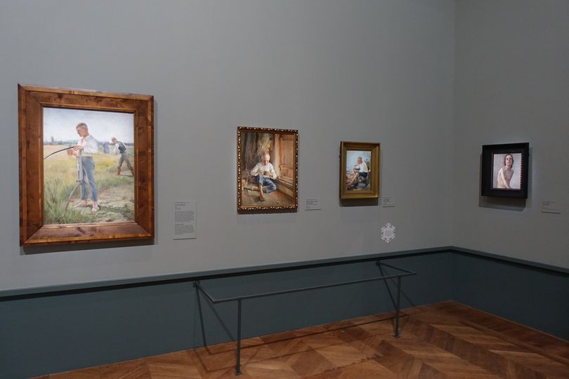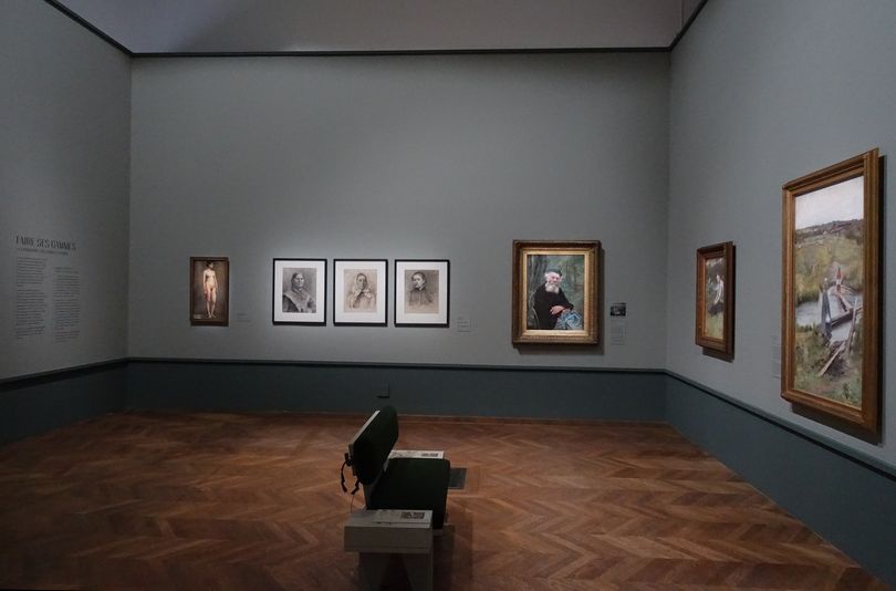Loué par Émile Zola comme le «petit-fils de Courbet et de Millet», Jules Bastien-Lepage fait forte impression au Salon de 1874 avec le Portrait du grand-père de l'artiste, pour lequel il obtient une médaille de troisième classe. On admire son authenticité et ses teintes lumineuses. Quelques années plus tard, Bastien-Lepage est consacré chef de file du naturalisme avec Les Foins (Salon de 1878). Son style fusionnant réalisme et impressionnisme constitue une inspiration durable pour les artistes nordiques venant se former à Paris. |