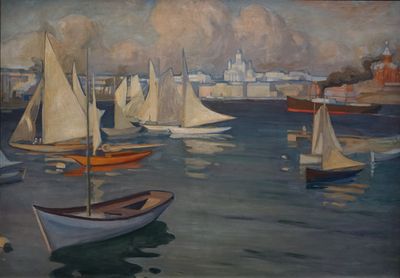 Le Port de Nyländska Jaktklubben met quant à lui l’accent sur la capitale du grand-duché de Finlande, Helsinki, aisément identifiable grâce à la silhouette de la cathédrale luthérienne qui se dresse en fond de perspective. |