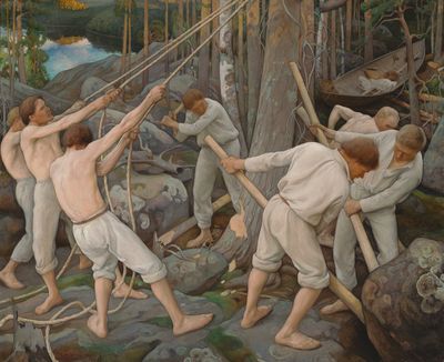 Pekka Halonen. Pionniers en Carélie, 1900. Huile sur toile, 200 × 237 cm. Helsinki, musée d’Art de l’Ateneum, galerie nationale de Finlande, collections Antell. © Finnish National Gallery / Aleks Talve.