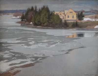 Pekka Halonen. La Fonte des glaces, 1916. Huile sur carton. Collection particulière. |