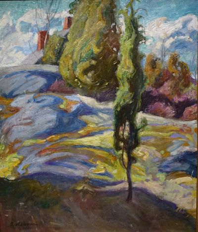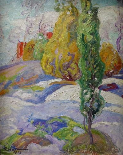 Pekka Halonen. Jour de mars, 1916. Huile sur carton. Collection particulière. |