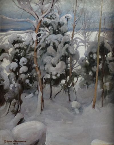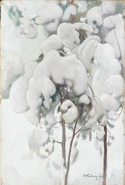 Plus que tout autre peintre finlandais, Pekka Halonen s’est affirmé comme le poète de la neige. Nul n’a su mieux que lui en représenter les multiples nuances, la faisant chatoyer avec la glace au fil des saisons. Le thème a traversé toute sa carrière, du milieu des années 1890 au début des années 1930.