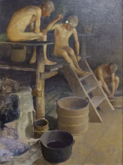 Pekka Halonen. Dans le sauna, 1925. Huile sur toile. Collection Niemistö. |