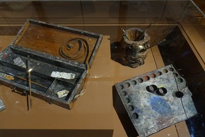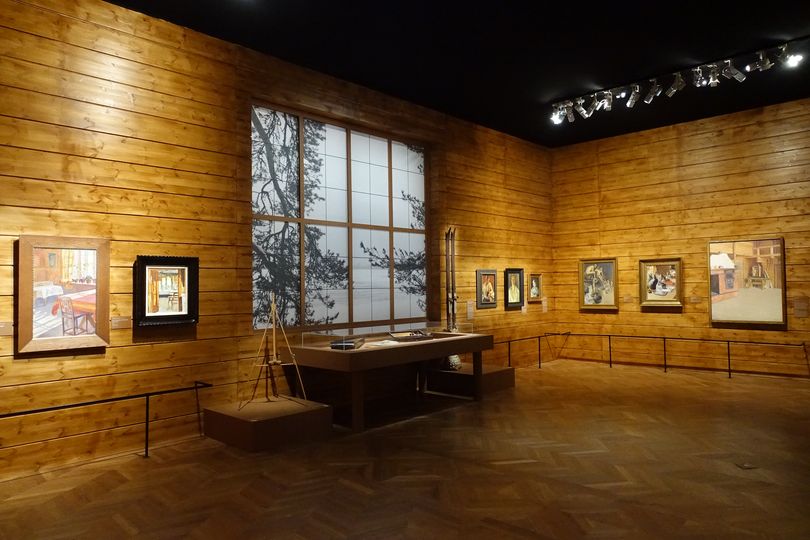 Scénographie avec des objets objets ayant appartenu à Pekka Halonen (voir également ci-dessous):