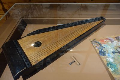 Pekka Halonen est initié très jeune à la musique par sa mère Wilhelmiina Halonen, joueuse émérite de kantele. Cet instrument revêt ainsi une importance particulière dans sa mythologie personnelle, incarnant l’âme finlandaise. Au cours de son premier séjour parisien, il réalise même son propre instrument, éprouvant le besoin d'en jouer pour apaiser son mal du pays. Cette petite gouache de son compatriot et ami Eero Järnefelt en témoigne. |