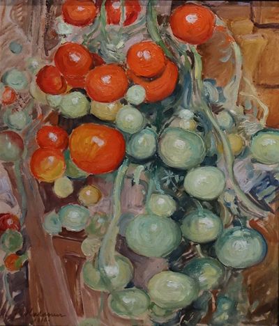 Les Tomates sont emblématiques du mode de vie domestique de Pekka Halonen dans les années 1910 et de son évolution vers un art plus coloré sous l'influence des tendances fauves et néo-impressionnistes. Les toiles de ces années dégagent un sentiment d'allégresse témoignant de la joie de vivre du peintre, ancré dans cette nature qu'il aime tant. Les tomates font la fierté de l'artiste et lui valent même un prix. À l'automne, les plants gagnent l'atelier, dont la grande baie leur prodigue suffisamment de lumière pour croître. |