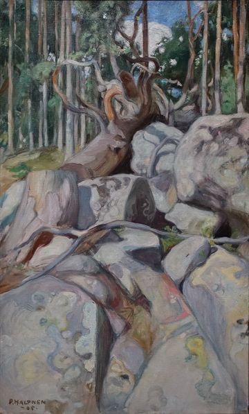 Pekka Halonen. Genévriers, 1901. Huile sur toile. Riihimäki (Finlande), Fondation du patrimoine Paloheimo. |