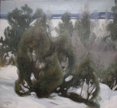 Pekka Halonen. Genévrier enneigé, 1917. Huile sur toile. Helsinki, musée d’Art de l’Ateneum, galerie nationale de Finlande. |
