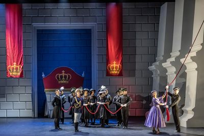 James Lovell (le prince) et la compagnie.Photo Johan Persson. |
