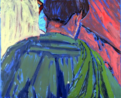 Claire Tabouret. Esquisse. Étude pour la baie de la chapelle Saint-Joseph, 2024. Encre et acrylique sur papier, 199,7 x 108 cm. |