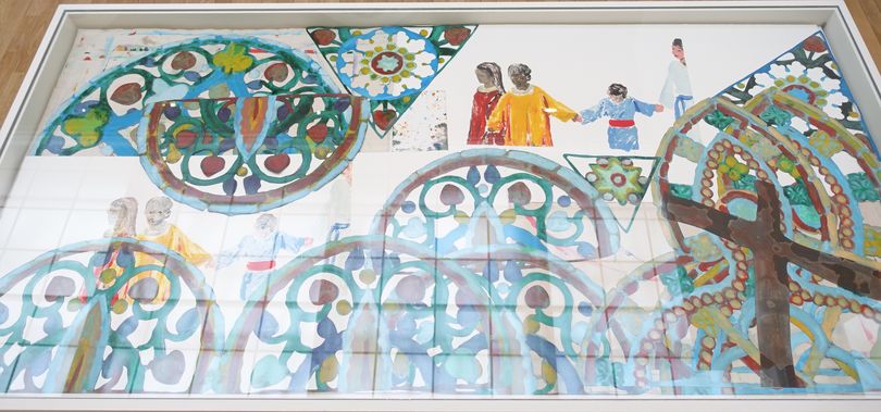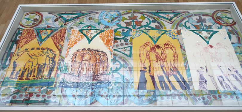 Claire Tabouret. Maquette, détail de la baie de la chapelle Saint-Joseph. Encre sur papier, 71,2 x 86,2 cm. © Claire Tabouret / photo Claire Dorn, 2025. |