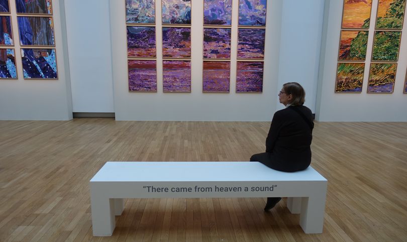 Baie de la chapelle Saint-Vincent-de-Paul. «Comme un violent coup de vent». 55 encres sur papier assemblées, dimension totale: 700 x 400 cm.