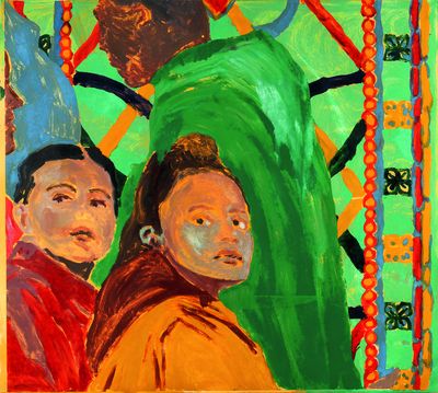 Claire Tabouret. Esquisse. Étude pour la baie de la chapelle Saint-Denys, 2024. Encre et acrylique sur papier, 199,7 x 108 cm. |
