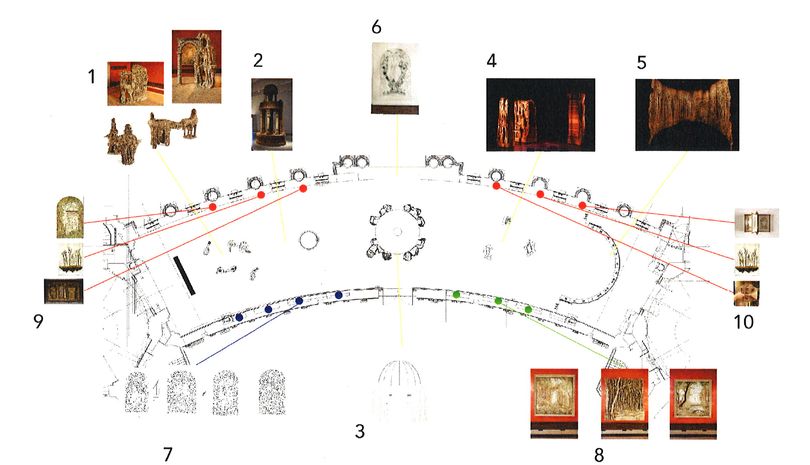Plan initial de l'exposition. L'emplacement final de certaines œuvres a été modifié.