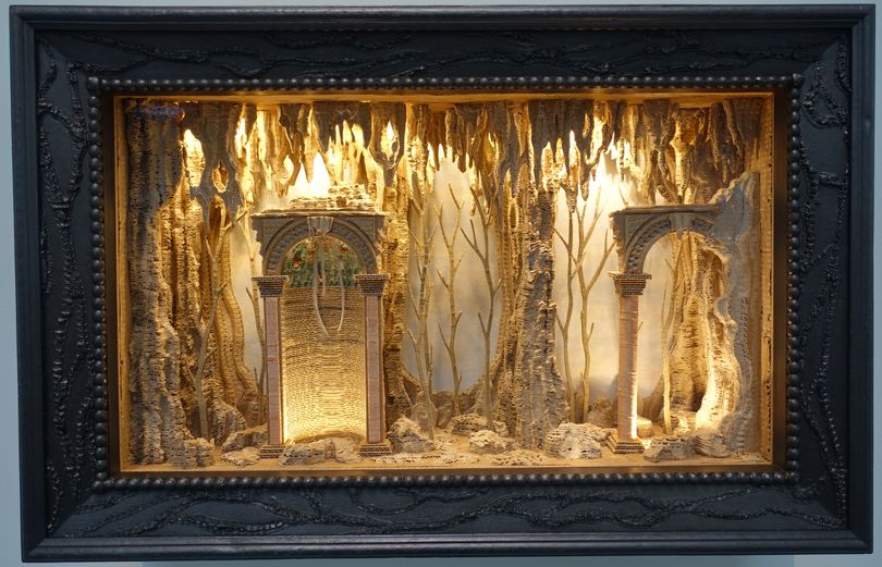 (9) Eva Jospin. Diorama, 2025. Bois, carton, peinture à l'huile, graphite, verre, led, 35,5 x 53,5 x 17 cm.