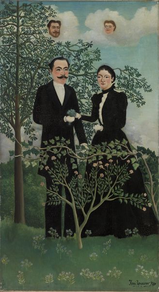 Ce «portrait-paysage» célèbre le second mariage de Rousseau. Sur le couple, veillent leurs anciennes amours: Clémence Boitard, sa première femme, et le premier mari de Joséphine Noury, tous deux décédés. Leurs visages flottent dans les nuages, comme les fantômes des photographies spirites en vogue. Sur l’ancien cadre, quelques mots écrits de sa main résumaient sa «pensée philosophique»: «Étant séparés l’un de l'autre, / De ceux qu'ils avaient aimés, / Tous deux s'unissent de nouveau, / Restant fidèles à leur pensée.». |