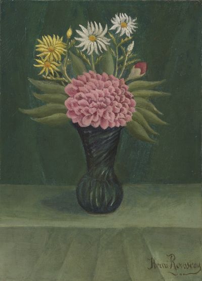 Henri Rousseau (1844-1910). Fleurs et dahlia dans un vase, vers 1904. Huile sur toile, 33 × 24,1 cm. The Art Institute of Chicago. Gift of Emily Crane Chadbourne, 1953. Photo © Art Institute of Chicago / Dist. GrandPalaisRmn. |