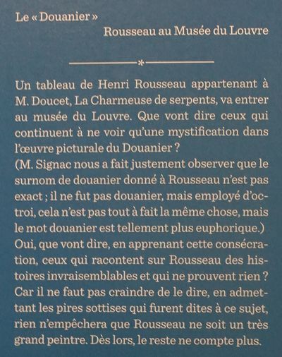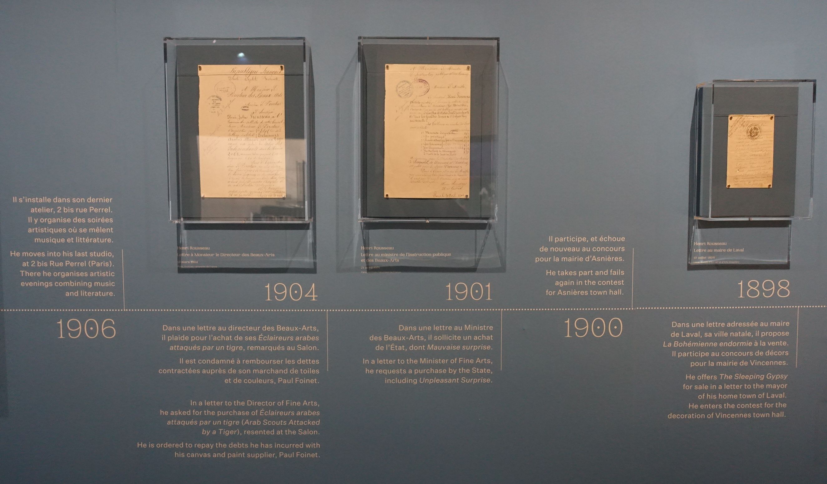 Réunies pour la première fois, ces toiles justifient leur statut de chefs-d'œuvre par leur originalité, leur variété et leur caractère unique dans l'œuvre de Rousseau. Réalisées à différents moments de sa carrière, elles connaissent chacune une trajectoire singulière. Mauvaise surprise, acquise par l’artiste Gabriële Buffet puis par le Dr Albert Barnes, est aujourd’hui l’un des fleurons de sa fondation. La Charmeuse de serpents intègre la prestigieuse collection de Jacques Doucet, aux côtés des Demoiselles d'Avignon de Picasso, dont Rousseau disait: «Nous sommes les deux plus grands, [lui] dans le genre égyptien, moi dans le genre moderne.» La Bohémienne endormie, quant à elle, se trouve aujourd’hui au Museum of Modern Art de New York, après avoir déchaîné les enchères à Drouot en 1926. Elles donnent ainsi raison à l'ambition de Rousseau qui affirmait à sa fille, sur le ton du défi: «Tu as bien tort de ne pas aimer ma peinture, tu en auras un jour pour plus de cent mille francs!»