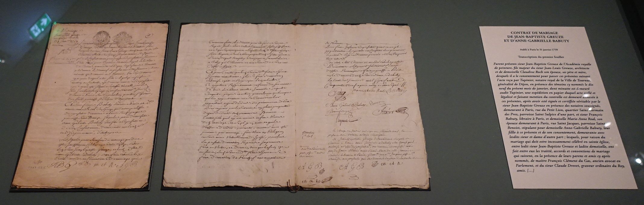 Contrat de mariage entre Jean-Baptiste Greuze et Anne-Gabrielle Babuty, 31 janvier 1759. Manuscrit, Paris, Archives nationales.