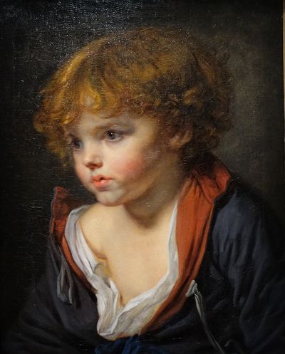 Cette figure de jeune garçon regardant de côté est présentée au Salon de 1765. Le tableau appartient alors à l'influent collectionneur Pierre Jean Mariette. Il ne s’agit pas d’un portrait, mais plutôt d’une étude de tête d’après un modèle inconnu, destinée à démontrer la virtuosité technique de Greuze: les coups de pinceau sont rapides dans le rendu du costume, plus fondus pour la texture des cheveux et du visage, où des empâtements accrochent la lumière et attirent le regard. |