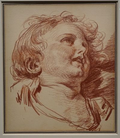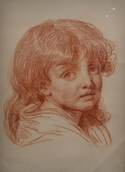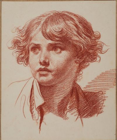 Jean-Baptiste Greuze. Tête d'enfant, vers 1766. Sanguine. Collection particulière. |
