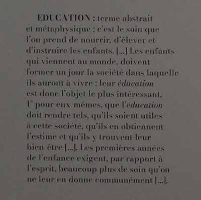 Denis Diderot (1713-1784) et Jean Le Rond d'Alembert (1717-1783). Encyclopédie ou Dictionnaire raisonné des sciences, des arts et des métiers. Paris, 1755, tome V, art. «Éducation». Paris, Petit Palais. |