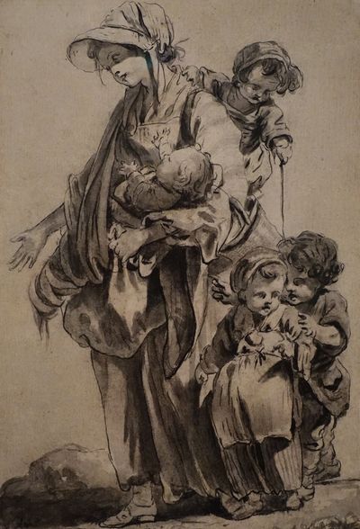 Jean-Baptiste Greuze. Une mère et son enfant, vers 1755 - 1757. Encre et lavis brun. Collection particulière. |