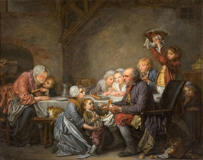 C’est au sein de la famille que se joue le destin des hommes, leur bonheur comme leur malheur. C’est là également que s’écrit, selon les penseurs des Lumières, et Greuze avec eux, le renouveau de la société aussi bien que sa décomposition. Pour eux, la famille est l’unité constitutive de la nation et le lieu d’apprentissage des valeurs collectives. Elle contribue à la formation du citoyen moderne, émancipé des préjugés et éclairé par le savoir.