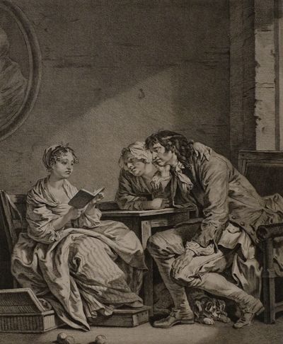 Jean-Baptiste Greuze. La Bonne Éducation. «À Paris, chez Wille, Graveur du Roi, Quay des Augustins». |