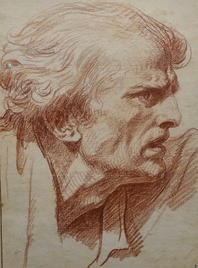 Jean-Baptiste Greuze. Tête d'homme, étude pour Le Fils ingrat, vers 1777. Sanguine sur papier vergé. Collection particulière.