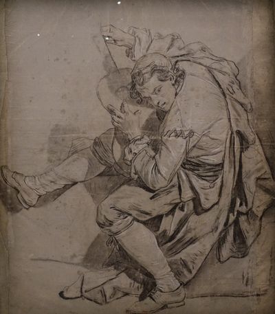 Jean-Baptiste Greuze. Étude pour La Piété filiale ou Le Fruit de la bonne éducation, vers 1761. Graphite et lavis d'encre noire sur papier. Le Havre, musée d'art moderne André Malraux.