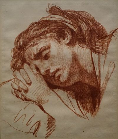 Jean-Baptiste Greuze. Tête d’une jeune femme, vers 1770. Sanguine. Collection particulière. |