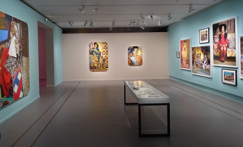 Cette exploration s’ancre dans la réinterprétation par Mickalene Thomas de moments emblématiques de l’histoire de l’art européen, et en particulier français, dans lequel la femme est généralement façonnée par le peintre et offerte à son regard. Toute une partie de l’exposition est ainsi consacrée à cet aspect essentiel de son travail où les femmes s’affranchissent de cette position et affirment leur place dans les tableaux les plus célèbres, tels que Le Déjeuner sur l’herbe d’Edouard Manet (1863) ou La Grande Odalisque de Jean-Dominique Ingres (1814). Les grands thèmes de la peinture, du paysage aux scènes d’intérieurs, deviennent un espace d’expression, de réinvestissement de la puissance de l’amour et de l’érotisme des femmes.