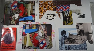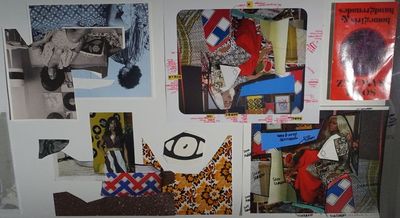 Qu’il s’agisse d’agencer les uns sur les autres des tissus à motifs dans ses compositions photographiques, ou de découper et réarranger des images en utilisant la technique du papier collé, le collage s’impose très tôt comme un médium central dans l’œuvre de Mickalene Thomas.
