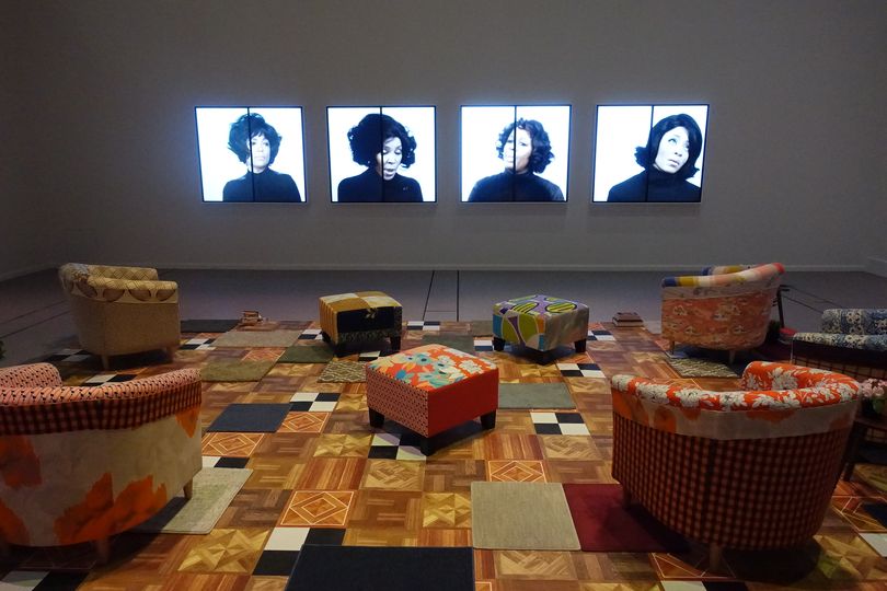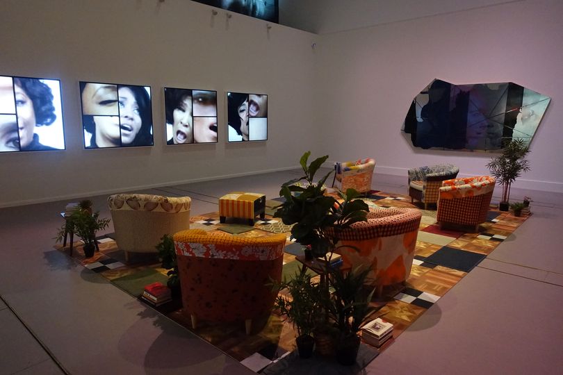 Mickalene Thomas. Installation reproduisant le salon de la mère de l'artiste dans les années 1980.