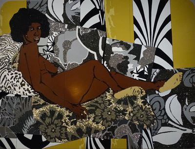 Avec la série Nus Exotiques, Mickalene Thomas explore la culture européenne, qui lui offre d’autres perspectives sur la diaspora africaine et la manière dont les modèles noirs ont été perçus, fétichisés et exotisés par le regard occidental, dans un contexte colonial. La série tire son nom d’un magazine de photographie français des années 1950 qui présentait des portraits de femmes noires dénudées, réalisés par le photographe italien Paul Facchetti. L'artiste aborde ces photographies - créées par et pour des hommes blancs - du point de vue d’une femme noire lesbienne, avec l'intention de subvertir les rapports de pouvoir impliqués dans ces images. Elle nous invite ainsi à faire face au caractère conventionnel de ces images et à interroger l’évolution du regard porté sur les corps noirs à travers le temps. |