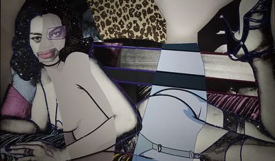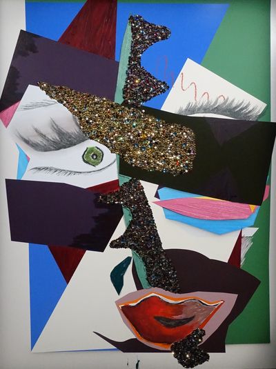Mickalene Thomas. Untitled #2, 2013. Paillettes, papier mixte, maquillage et peinture acrylique sur carton d’archivage, 53,3 × 43,8 × 4,4 cm. Courtesy de l’artiste. |