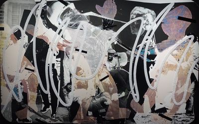 Des images sérigraphiées de violences policières exercée contre les manifestants dans les années 1960 sont superposées sur la toile. Au centre, l’image d’Amelia Boynton Robinson, figure majeure du mouvement des droits civiques, est portée par d’autres manifestants en soutien à la militante blessée par la police lors d’une manifestation à Selma, Alabama, en 1965. Cet événement, connu sous le nom de «Bloody Sunday», a joué un rôle de catalyseur dans la décision d'adoption de la loi sur le droit de vote de 1965, qui visait à mettre fin à la discrimination raciale pour accéder à ce droit. |