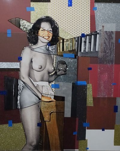 Mickalene Thomas s’inspire aussi de l’érotisme noir présenté dans les magazines populaires des années 1970, en particulier la revue Jet, avec ses pages centrales sur «La Beauté de la semaine» et ses calendriers de pin-up. On retrouve également dans son choix d’archives des publications issues du magazine parisien Nus Exotiques. Utilisant le collage pour réinterpréter visuellement ces documents, elle nous encourage à réfléchir aux évolutions et aux persistances des représentations visuelles des femmes noires à travers le temps.
