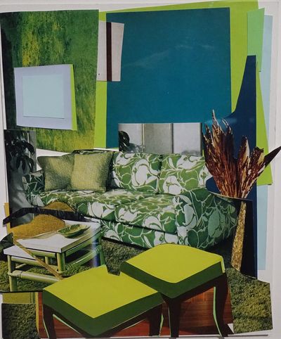 Mickalene Thomas. Interior: Green and White Couch, 2011. Photographie couleur et collage sur papier sur carton d’archivage, 43,18 x 46,99 cm. Courtesy de l’artiste. |