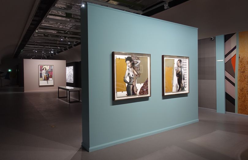 Mickalene Thomas. Nus Exotique #2, 2023. Photographie couleur, papier mixte, peinture acrylique et strass sur papier musée monté sur Dibond, 105,89 x 107,37 x 6,67 cm. Collection privée. |