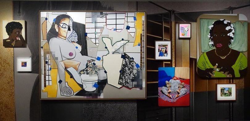 L’art – en particulier la peinture traditionnelle – a été utilisé par les cultures dominantes et les élites pour se promouvoir et perpétuer les structures de pouvoir. L’artiste emploie son art comme moyen de résistance à l’exclusion des femmes noires de cette histoire, mais aussi contre leur réduction à des figures de servitude ou de divertissement. Dans les toiles de cette salle, elle renverse la représentation canonique du nu dans l’histoire de l’art occidentale, en