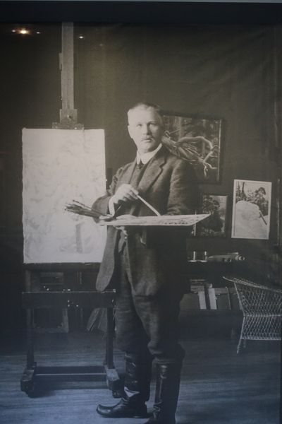 Scénographie avec des objets objets ayant appartenu à Pekka Halonen (voir également ci-dessous):