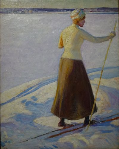 Pekka Halonen. Jeune Fille skiant, vers 1910. Huile sur toile. Collection particulière. |