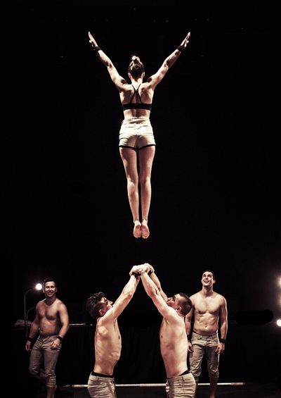 Acrobates: Ashley Youren, David Trappes, Emily Gare, Georgia Webb, Hamis Mc Courty, Leann Gingras, Skip Walker-Milne.